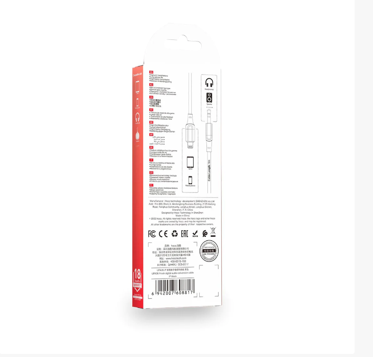 Digital to Analog Conversion (DAC): Experience superior audio quality with the Hoco DAC Lightning to 3.5mm AUX Cable. This cable incorporates a Digital to Analog Converter for high-fidelity sound reproduction.