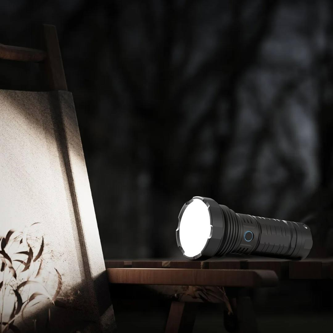 The Porodo Ultra Bright Tactical Torch is a lightweight flashlight that you can use everywhere, and it's easy to carry. Not only does it have a lightweight design, but it also comes with fantastic features. It has three different light settings for you to choose from, and it's really bright, with a strength of 1800 lumens. Additionally, you won't have to change the batteries all the time because it comes with a rechargeable battery (6600mAh) that works up to 5 hours on a single charge. When it's time to charge, you can simply use a micro-USB cable, like the one you use for many phones or gadgets. So, whether you need a light for a trip, a walk in the dark, or just around the house, this torch is a good choice.